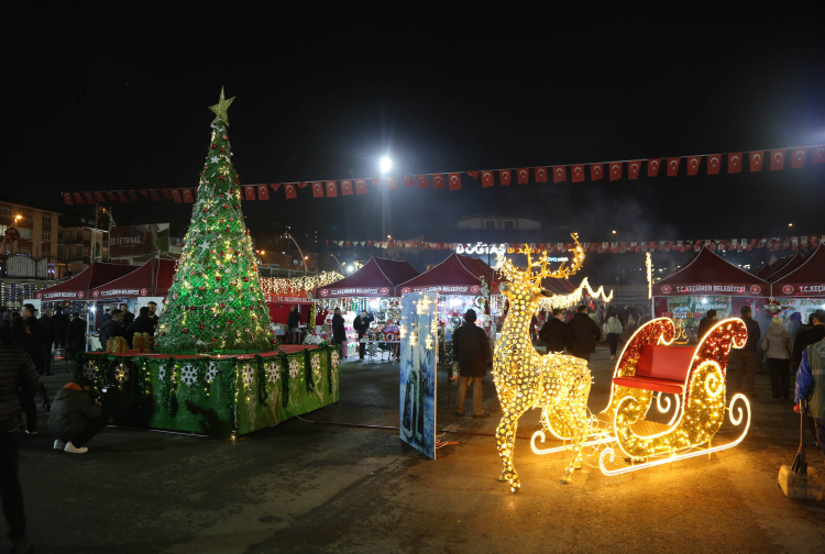 Pazar alanı; özel ışıklandırmalar, yılbaşı ağaçları ve geyik figürlü ışık süslemeleriyle donatılarak yeni yıl atmosferine uygun hale getirildi. Görsel zenginliğiyle dikkat çeken alanda, hem üretici kadınlar hem de ziyaretçiler keyifli bir alışveriş ortamında şimdiden yeni yıl coşkusunu yaşamaya başladı.