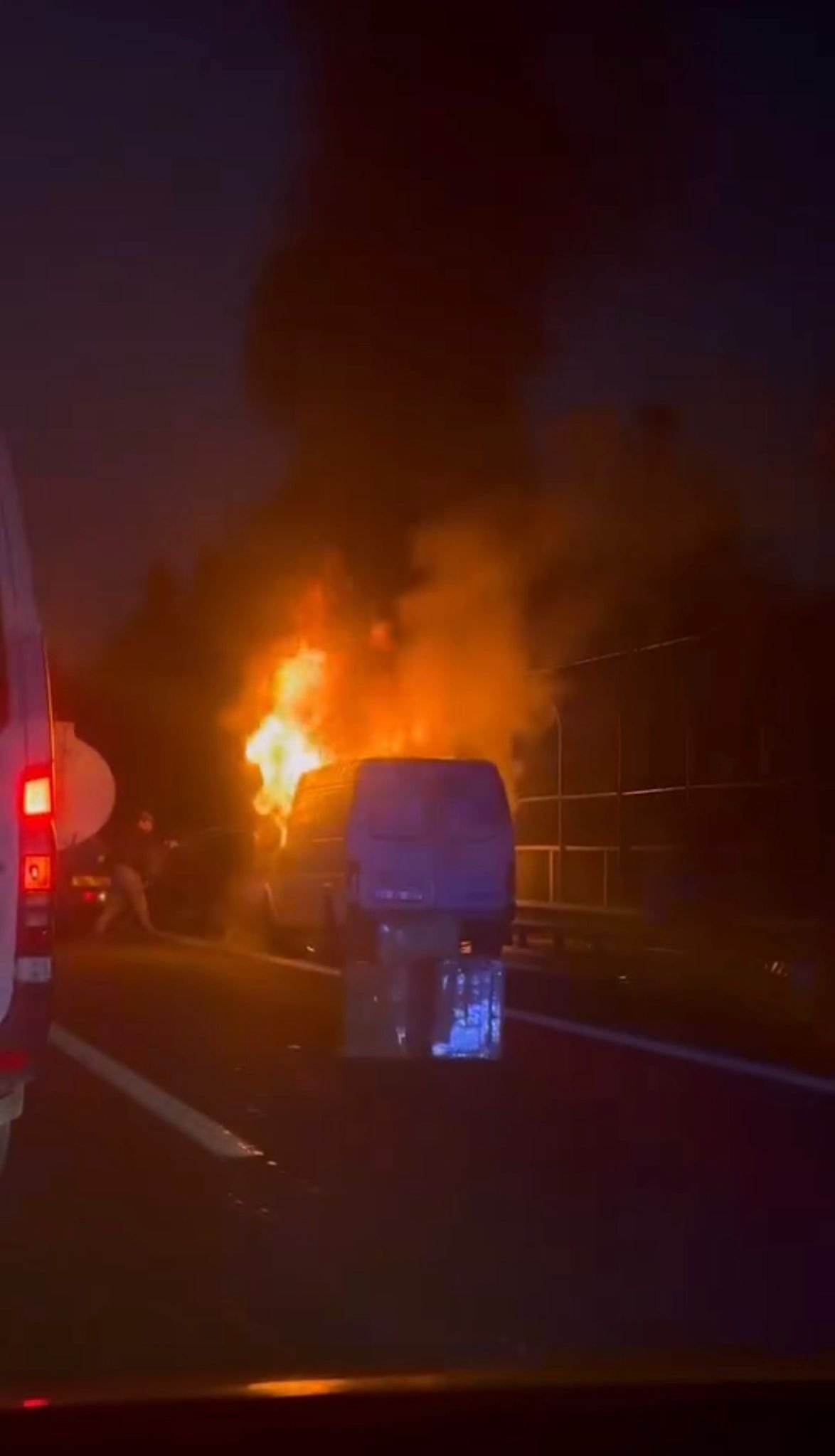 Yangın, saat 19.00 sıralarında TEM Otoyolu Beşiktaş mevkisinde meydana geldi. Edinilen bilgilere göre, Esat Y. yönetimindeki minibüsün elektrik aksamında henüz belirlenemeyen bir arıza oluştu. Arızanın ardından motor kısmından yükselen alevler kısa sürede aracın ön bölümünü sardı.