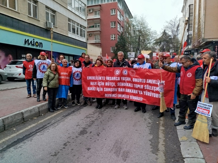 Yürüyüş, DİSK Devrimci Emekliler Sendikası öncülüğünde gerçekleştirildi.