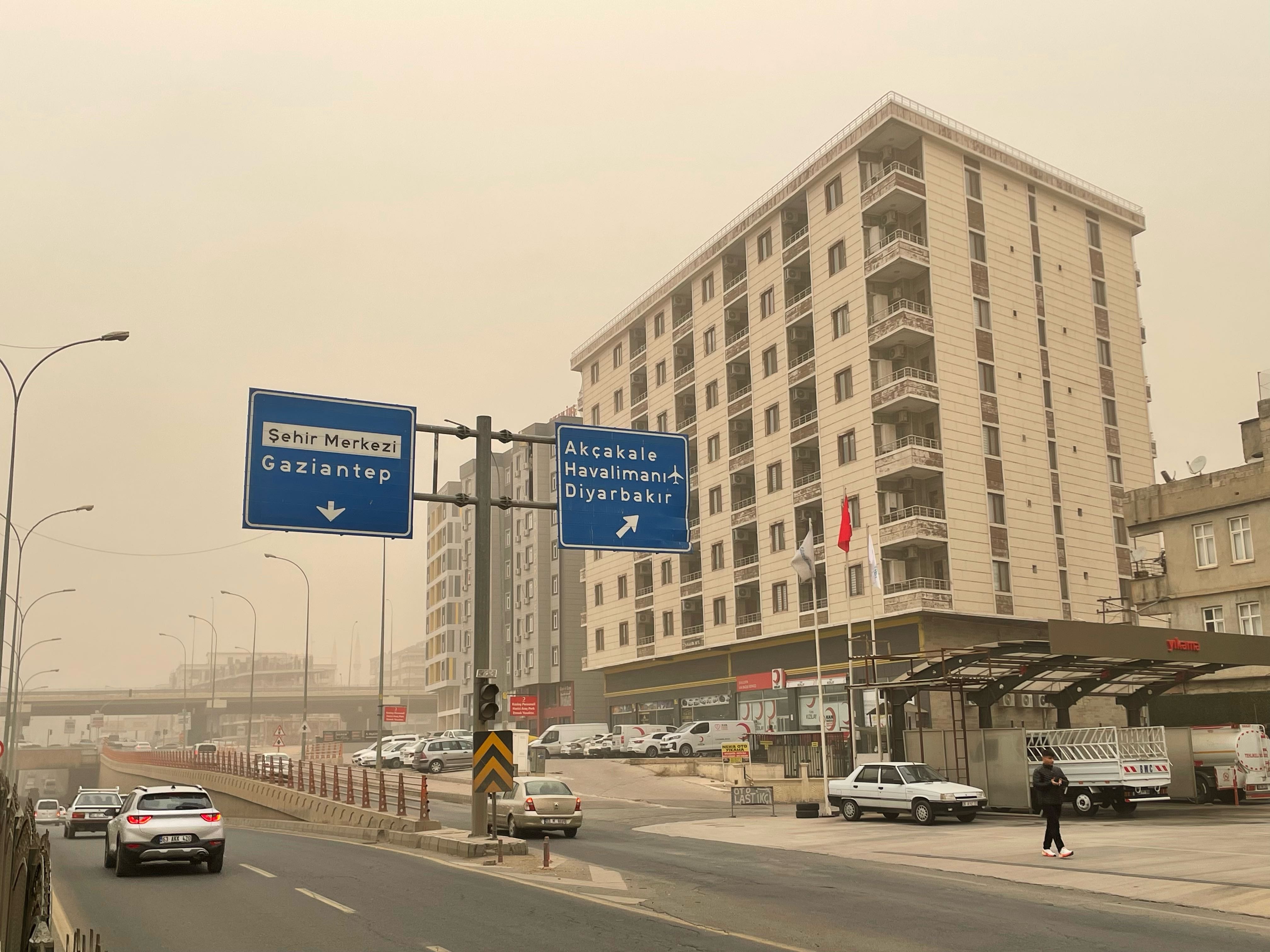 Toz bulutu nedeniyle görüş mesafesi düştü. Park halindeki araçların üzeri tozla kaplandı.