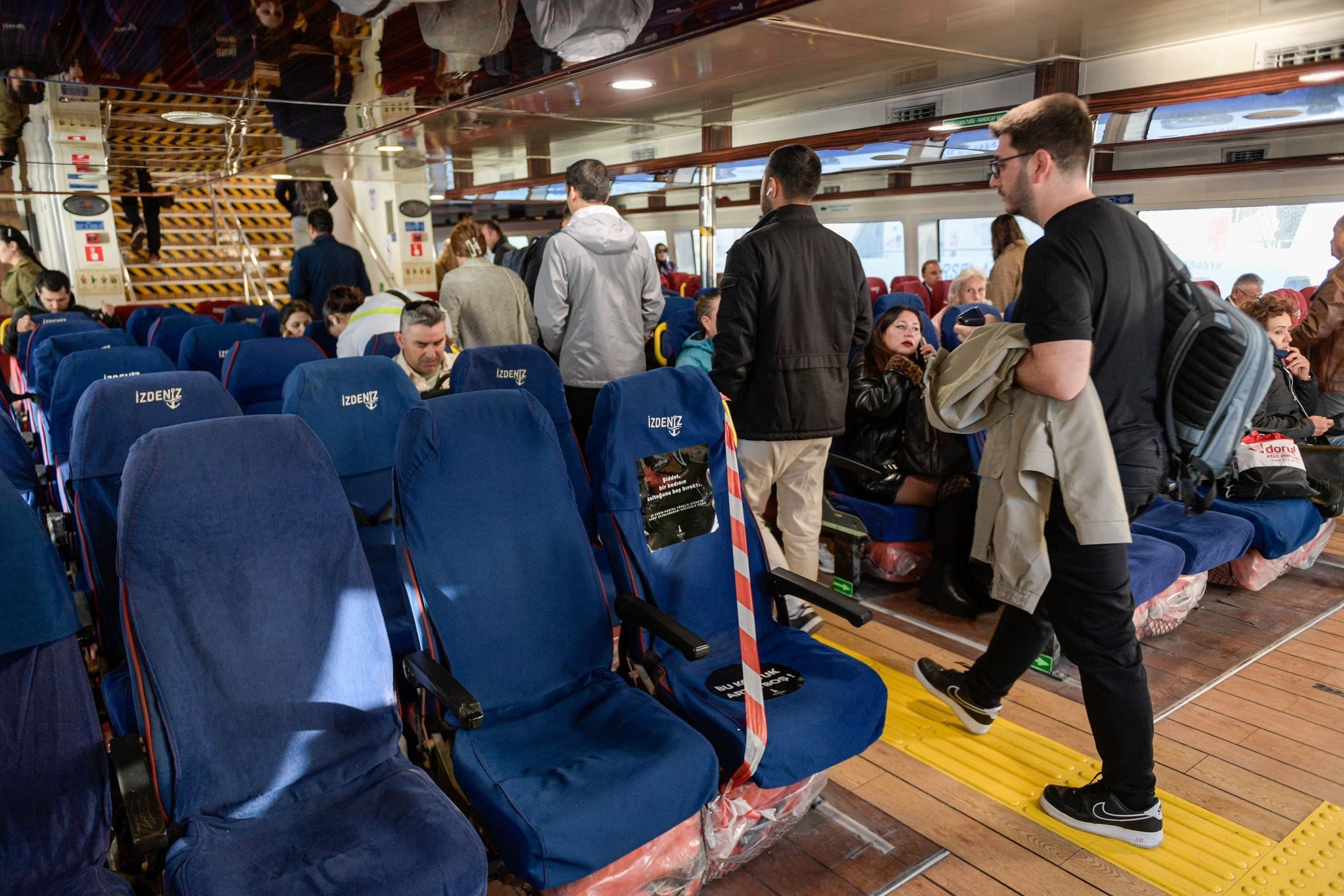 İzmir Büyükşehir Belediyesi, kadına şiddete dikkat çekmek için toplu taşımada bir koltuğu boş bıraktı.